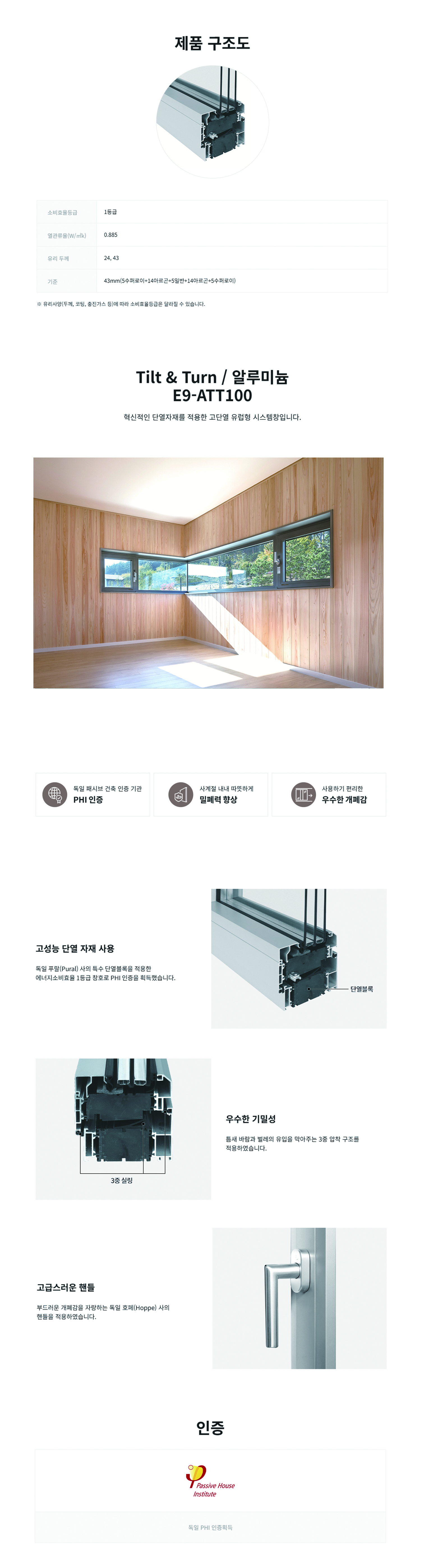 에너지소비효율 1등급의 고단열 유럽형 시스템창_Tilt&Turn