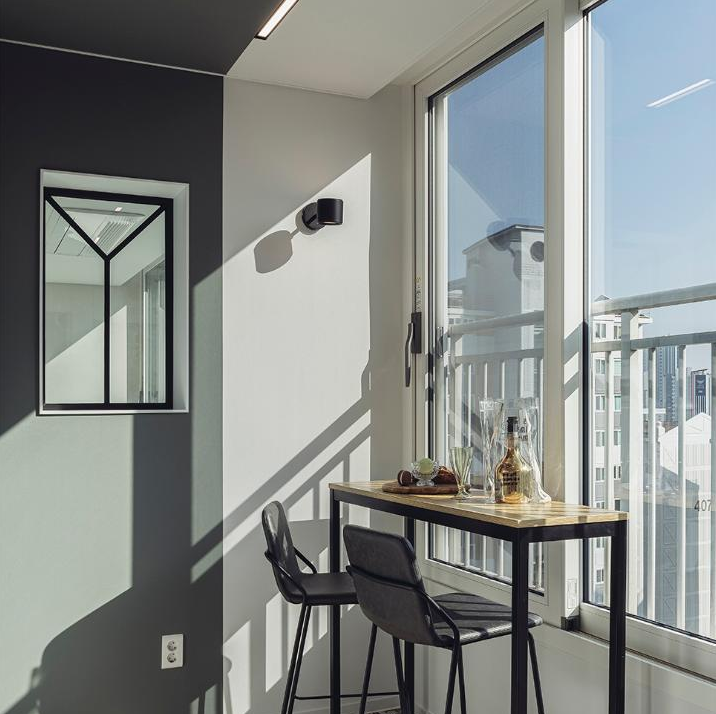 완벽하게 밀착시켜 만들어지는 유리로 줄 방범과 소음차단의 효과가 뛰어나