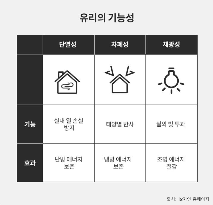 유리는 프로파일 소재와 함께 창호의 성능을 좌우하는 또 다른 핵심 요소로