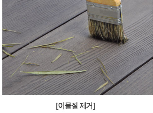 - 외피를 형성하고 있는 수지에 특수 가공을 통하여 나무의 질감을