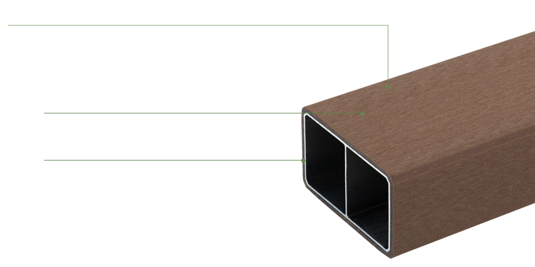 - 목분을 함유한 수지를 금속 형재에 코팅 성형한 제품으로 나무의 질감과 초경량·고강도 성능을 실현합니다.